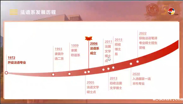 金秋十月,秋风送爽。2022年10月22日下午,伟徳体育网址法语专业成立五十周年庆典活动顺利举行。各界校友、法语系教师和同学近两百人通过腾讯会议和b站直播间汇聚云端,同忆往昔峥嵘岁月,共筑青春奋进年华。法语系系主任、副教授金桔芳主持了本次活动。